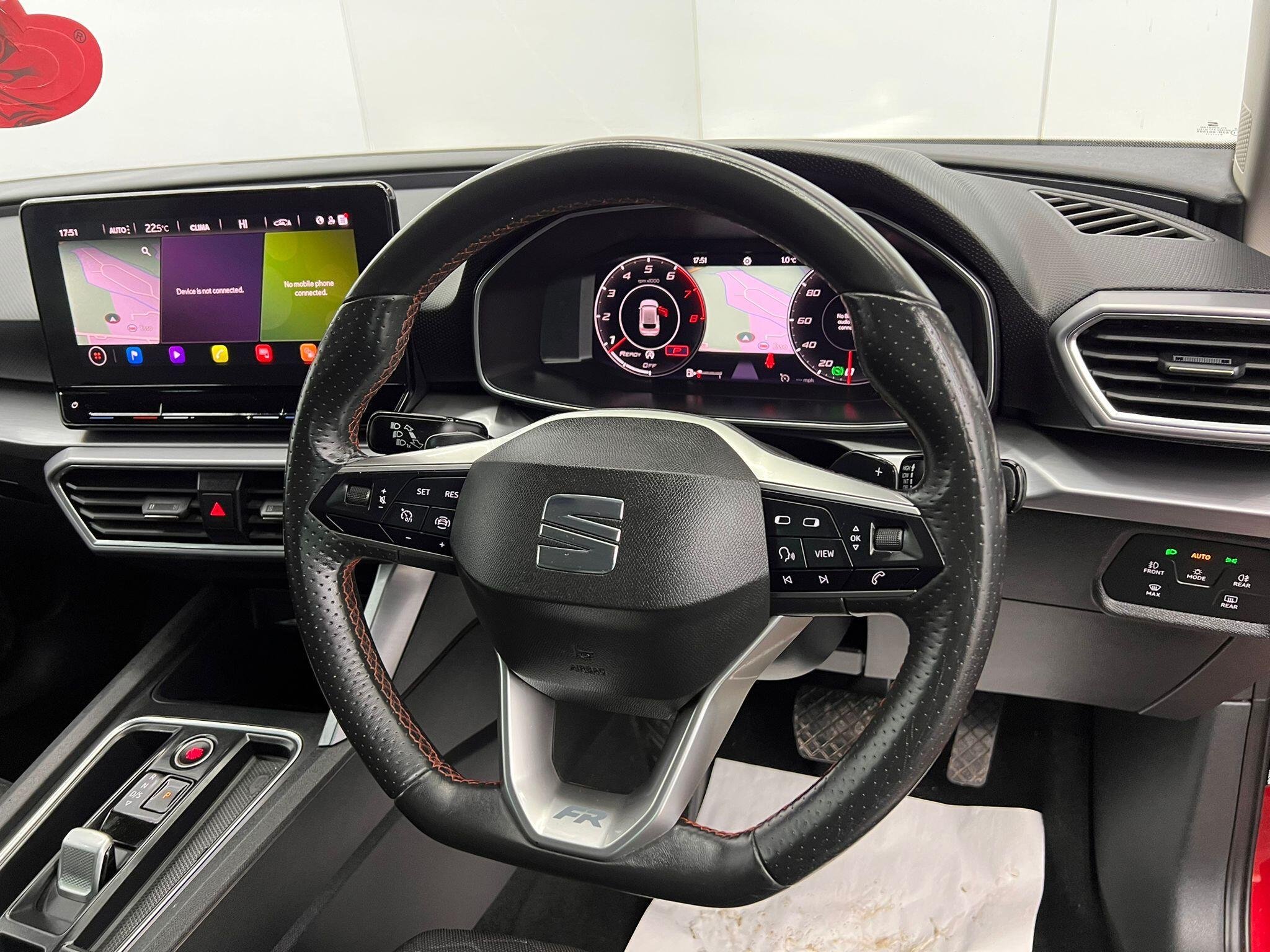 - Leather Flat Bottomed - Perforated Steering Wheel with Red Stitching and FR Logo